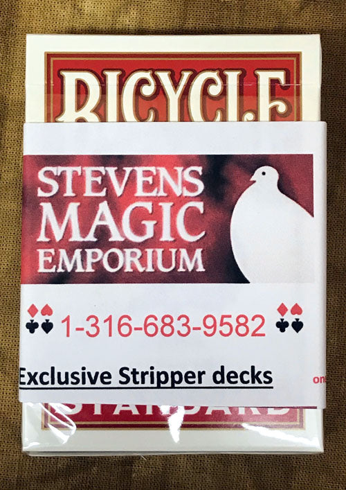 SME brand custom STRIPPER Decks. Stevens Magic built our reputation on pushing the envelope and providing professional quality products. Thus, we have hired a professional card mechanic to hand-make these Decks. These are not bulk manufactured – each deck is made by hand with meticulous attention to quality control. What makes this deck different? The manner-in-which it is prepared is more precise allowing for those familiar with the deck already to still be able to execute it but to even the discerning eye, the deck looks completely normal. Without exposing the secret, I'll use a marked deck analogy. A really good marked deck is one that "initially" is very different to find the mark. But for the trained eye - it screams at them. Or we could use the phrase - Hidden-In-Plane-Sight! That is the philosophy behind the construction of this Svengali. It's all about degree's really. This deck turns DOWN the volume, allowing it to be less suspicious. Thus, it's the "professional" Stripper Deck. YES - it cost a few more bucks because it's NOT mass manufactured but for only a little more you're getting a much better, refined product.