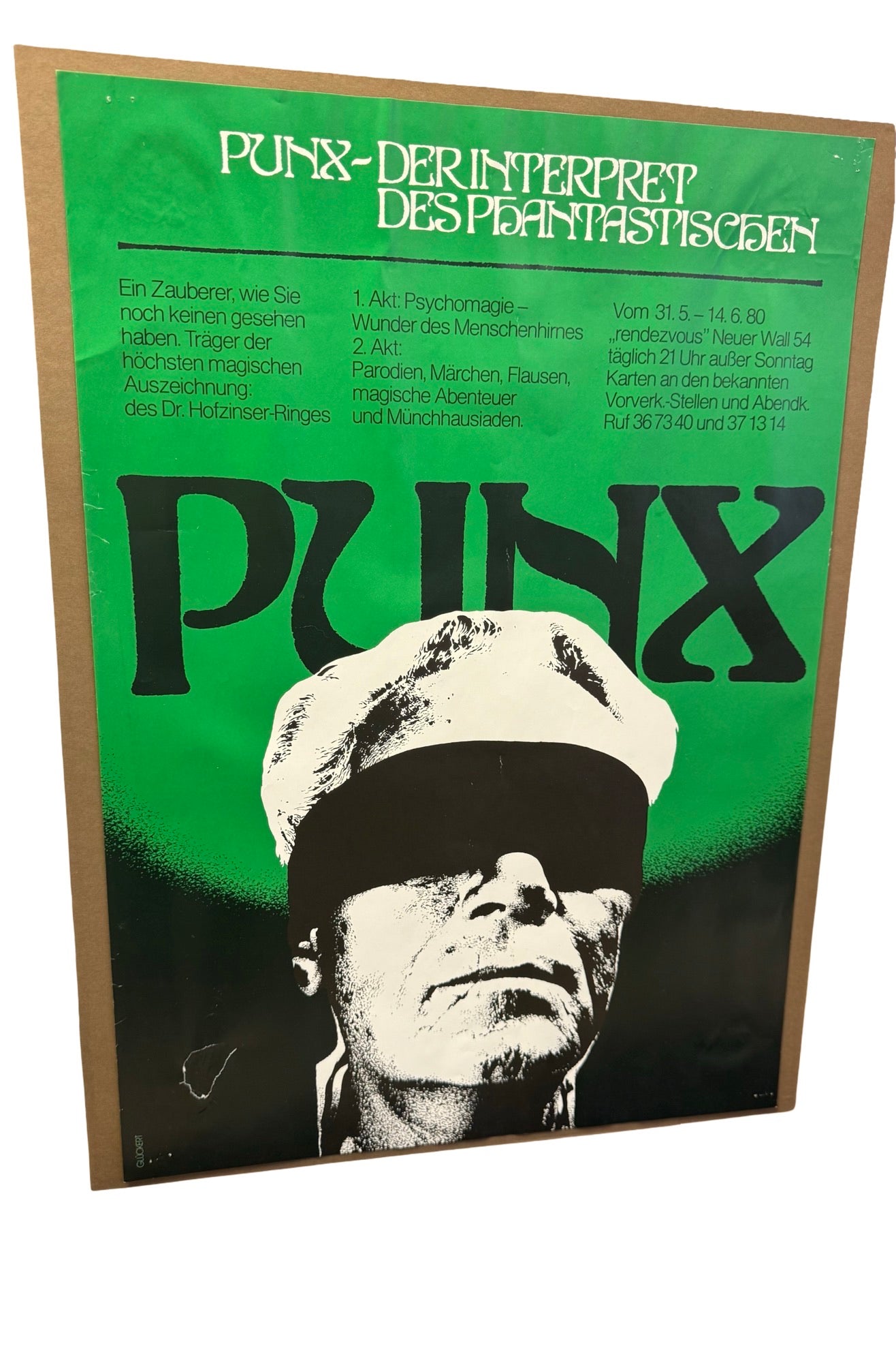 Very Scarce - German poster of the famous PUNX paper poster that was from the Brother Shadow estate. The item is in relatively good condition however there is a small tear (see images) on the lower left corner of the poster. There is another small perforation that is difficult to see in these image. Certified from the estate of Brother Shadow.