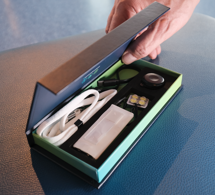 Gimmick can be hidden under your White shirt, your white t-shirt or in the heart pocket of your costume behind a square of silk or white scarf ; Neuro Light remains very discreet and Ready to use every moment.