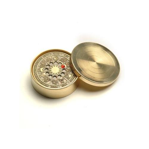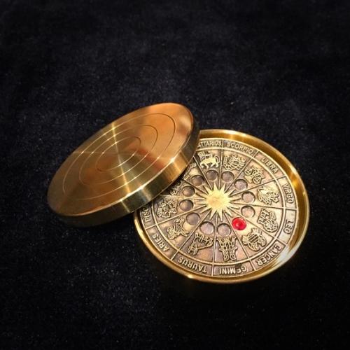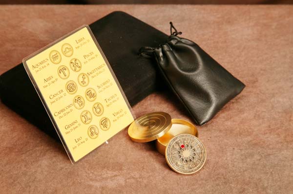 For the first time, the performer removes the lid on the box. Inside is a silver dollar-size medallion with the 12 signs of the Zodiac emblazoned on it.