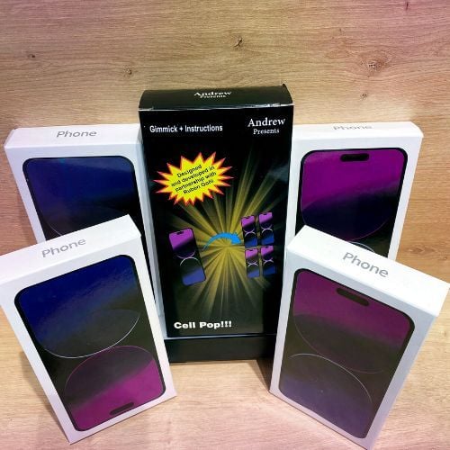 A creation resulting from the collaboration between two renowned gimmick manufacturers: Andrew from Brazil, and Rubén Goñi from Argentina! Cell Pop is a new trendy effect: particularly visual, modern and original, it will leave your viewers speechless! You will be able to start from one phone box, produce four and release a real phone at the end*. This is a new effect with high comic and visually stunning potential.