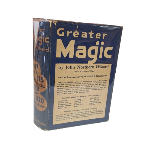 Greater Magic: A Practical Treatise on Modern Magic is a landmark 1,005-page hardcover on magic, compiled from Hilliard's manuscripts and notes, edited by Carl W. Jones and Jean Hugard, with illustrations by Harlan Tarbell. Privately printed in a limited run of 1,000 copies by C.W. Jones for professional and amateur magicians