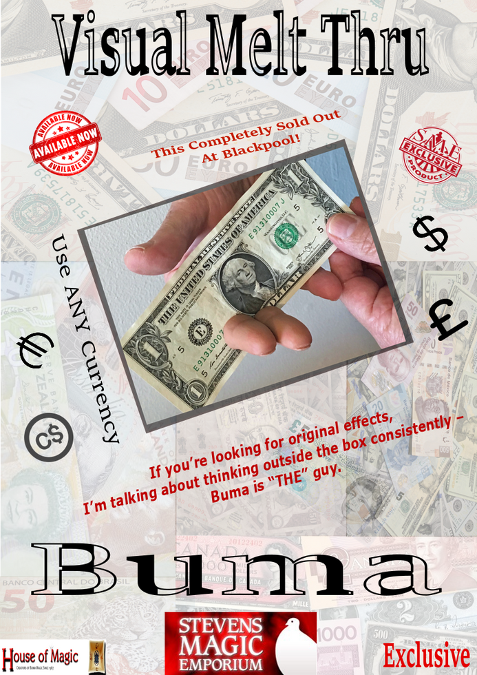 Buma has combined two sure-fire, time-tested magic winners - Money and Penetrations! In doing so he as taken them into the stratosphere! If you're looking for original effects, I'm talking about thinking outside the box consistently - Buma is "THE" guy.