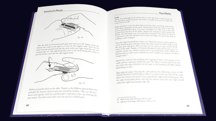Instructions for Miracles features 10 beautifully constructed performance pieces for advanced card workers straight from the repertoire of Friedrich Roitzsch. While the plots may sound familiar to you each piece has been updated with some new ideas. The book is hardbound with an extravagant, relief-varnished cover designed by Jxc3xb6rg Willich. It contains 98 pages, 87 crystal clear illustrations by the author and a foreword by Pit Hartling. It's written in English and measures 5.8 x 8.3 inches.