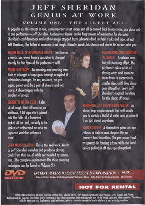 As popular as the concept is now, contemporary street magic can all be traced back to one time, one place and to one performer-Jeff Sheridan. A ubiquitous figure on the busy streets of Manhattan for decades, Sheridan's cool demeanor and red-hot magic stopped busy urbanites dead in their tracks and now, at last, Jeff Sheridan, the father of modern street magic, literally breaks his silence and shares his secrets with you.