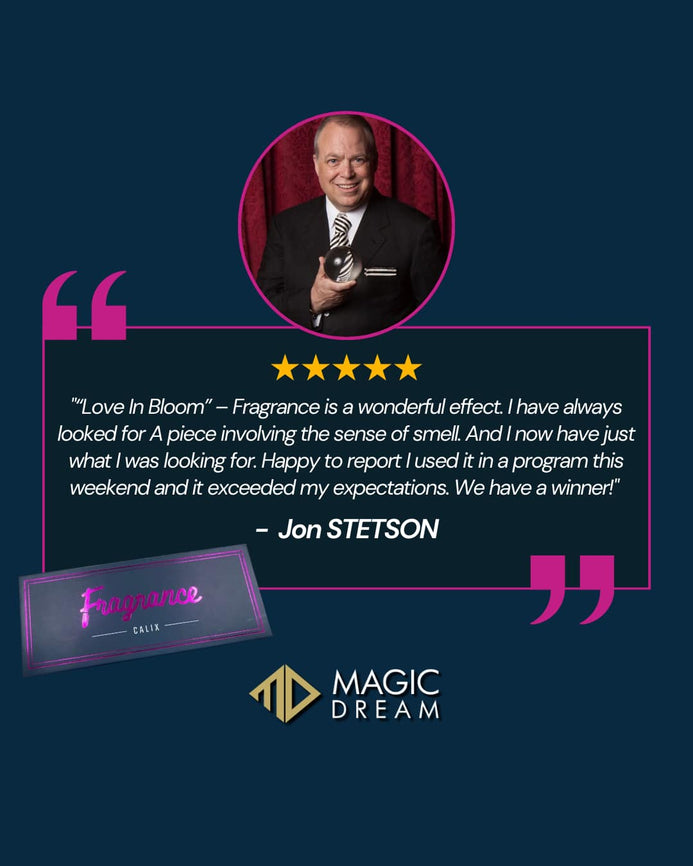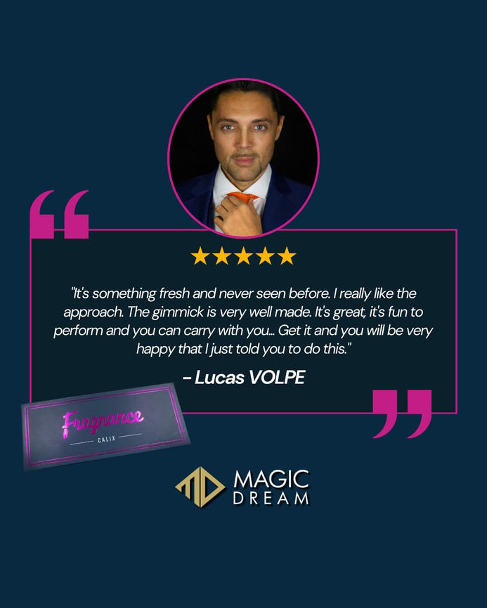 Fragrance is much more than a simple powerful entertainment. It is a tool that you will definitely integrate into your repertoire, it will be so different that anything you perform setting you in a class with yourself. This is a gamechanger for any magician.