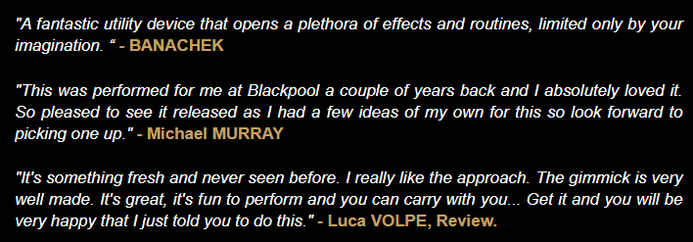“A fantastic utility device that opens a plethora of effects and routines, limited only by your imagination.” – Banachek