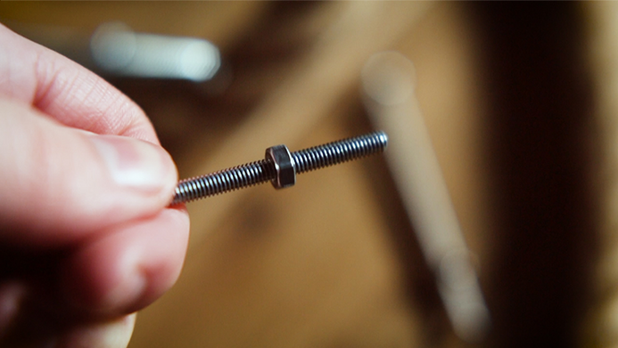 With the bolt either pinched between the tweezers or the magician's thumb and finger (either method is unbelievable to watch!), the magician focuses his mind on the nut as it begins to wind itself up or down the bolt.