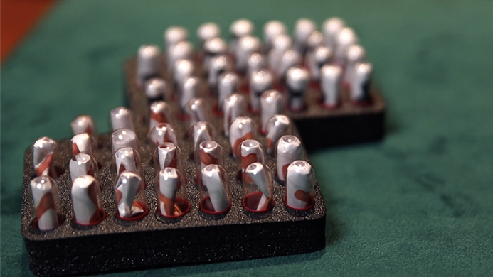 The magician displays a bottle of pills, and has a spectator hold on to it. The spectator can freely name any playing card, and choose either the red pill or the blue one. When they open the bottle, the chosen color pill will predict the spectator's card perfectly.