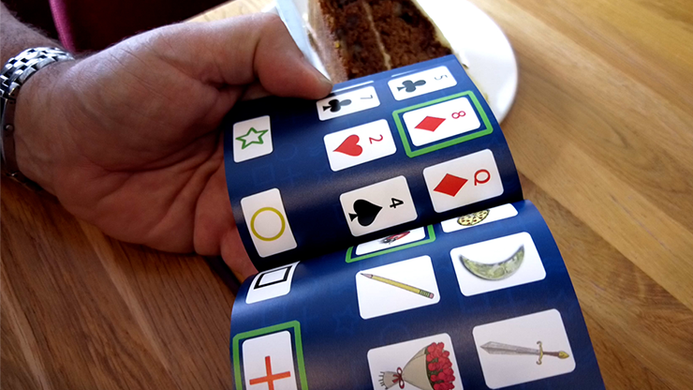 Have your spectator flick to ANY page (no force) and focus on the pictures, playing cards or ESP symbols. Just by reading them out, in ANY order, you'll know INSTANTLY which one is randomly highlighted green. The feat is instantly repeatable with items on the same page, or have them flick to a different page and repeat the test again. No matter how many times they do it - you are always right.