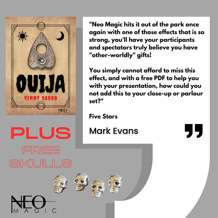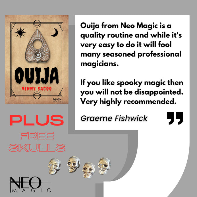"Ouija from Neo Magic is a quality routine and while it's very easy to do, it will fool many seasoned professional magicians if you like spooky magic then you will not be disappointed. Very highly recommended". - Graeme David Fishwick (Magician and Creator)