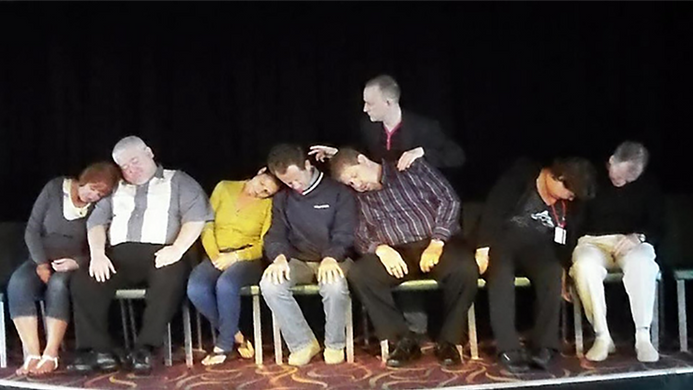 In one of the videos he is also joined by his friends and colleagues, hypnotists, Robert Temple, Nick Stone aka Nick Davies and the Great Gordini (Gordon Park) as they perform a kind of "tag team" comedy hypnosis show together.