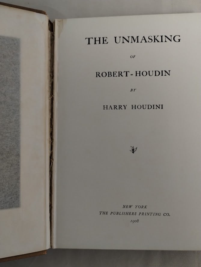 First edition of this work by Houdini regarding his one-time idol. Octavo, original cloth, frontispiece of Houdini, illustrated throughout.