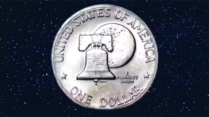 - A steel-shimmed Eisenhower bicentennial dollar with an image of the moon.