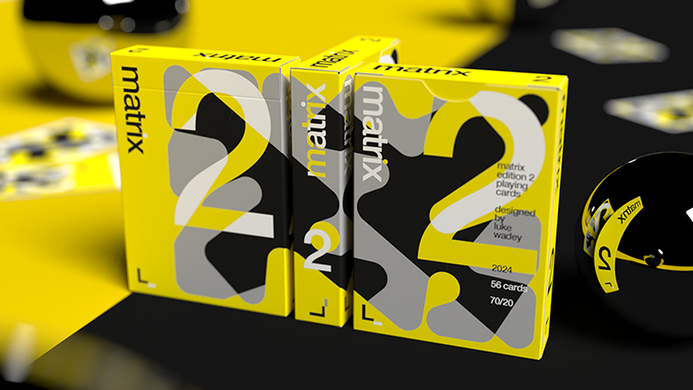 The second deck in Luke's Matrix collection combines his love of typography, with bold, original pattern design, fully customized with thirteen different face card graphics - now with customized pips and indices, plus a brand new 2-way back design.