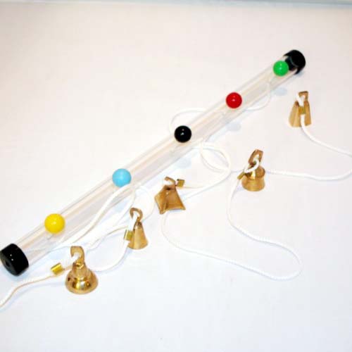 Five antique bells are suspended on different lengths of cord from a clear Lucite tube. The performer holds the tube at arm's length and asks a spectator to choose one of the bells. On command, the bell begins to swing. At first, ever so slightly, and then it picks up momentum until it is swinging wildly. The spectator is asked to make another choice, and upon doing so, the first bell returns to its previous state of quiescence while the second begins to swing.