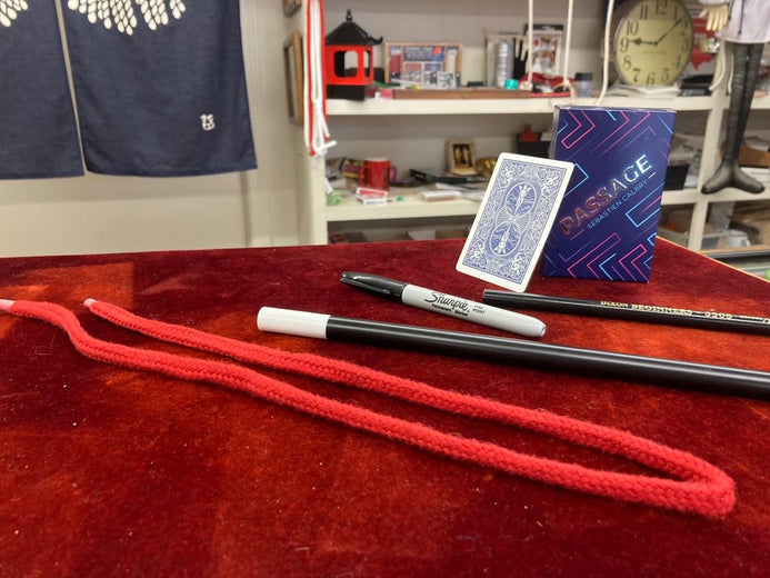 After Offset, Manivelle and Majesty, comes “Passage" a trick that will allow you to pass an object such as a marker, a pen, a straw, a Mikado, through a Bicycle playing card, in an original and impossible way.