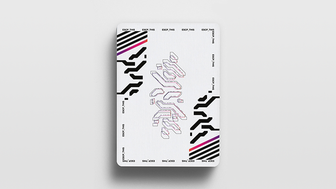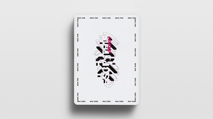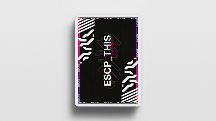 The ESCP_THIS 2021 Cardistry deck is the 2nd installment of this series. Designed by Alex Matencio, it features a complex design inspired by tech-wear and sci-fi. Using futuristic graphics, intricate shapes and bold typography, we created a deck that stands out from all others, with an "underground" atmosphere.The strong contrasts between the dark backs and the bright faces make this deck perfect for cuts, and the diagonal stripes create beautiful fanning patterns with rhythms on the backs, and connections on the faces.