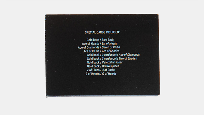 • Gold back / mispipped Two of Spades (Three card monte)