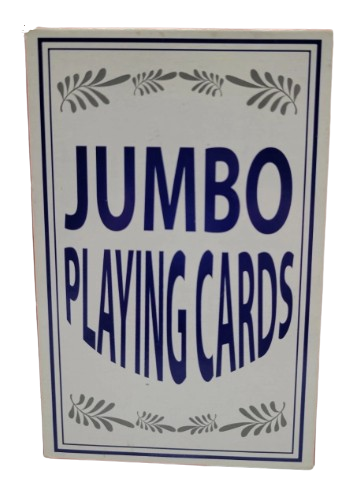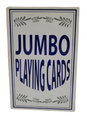 These jumbo decks are 5.5 Inches by 3.5 Inches and great for higher or lower or charity games as well as display games and those with limited vision / mobility. They are plastic coated paper for a good life and of nice quality for the price.