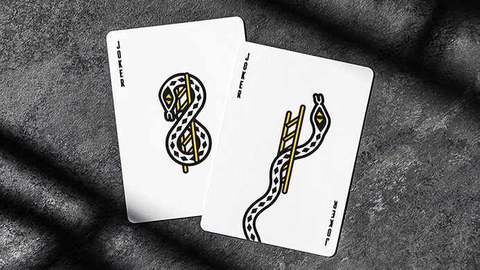 A super creative and fun way to reveal a spectators card. Inventive design uses the snake to reveal a force card of the 8 of diamonds! Use any color change to activate the transformation and change the snake into the spectators 'freely' chosen card! This is a great little trick in itself but can be combined with the Snakebite Gaff and other features in the deck to create a full Snakes & Ladders routine.