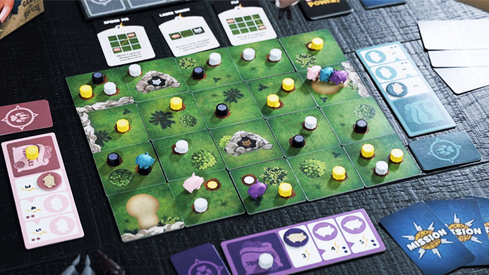 Super Truffle Pigs is a Light Strategy Tabletop Game for 2-4 players. Join the Super Truffle Pigs on their hunt, but beware of the wolves prowling the forest! Navigate your way to victory as you dig for truffles and complete missions to earn points. Use superpowers to get ahead, and avoid the wolves before they reach you!