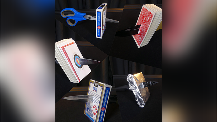 In this new version, you will be able to do the trick anywhere, anytime and in any situation. Now, you don't need to destroy a card box every time that you perform, you can do it with some papers, napkins, aluminum foil or just... NOTHING! Yes, for first time, you will stab the full deck in front of the audience, in plain view because there is nothing to hide.