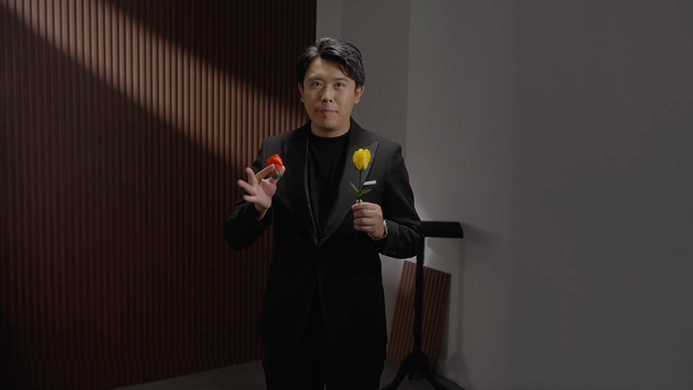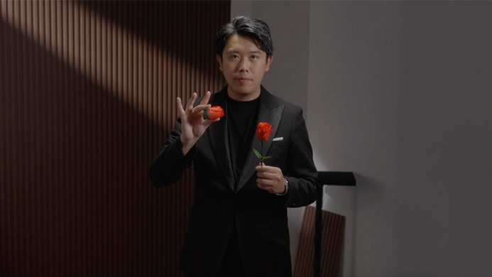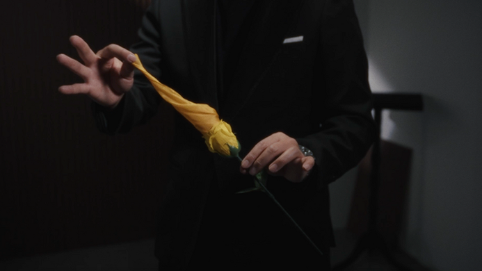 Magician displays a red rose, he plucks the flower head but amazingly there is another flower head appears on the stem, again magician pluck this flower too from the stem, but new flower appears magically. After repeating this again two more times, the red rose color change into a yellow rose. When the magician plucks the yellow rose head, a blue rose head appears. A silk is pulled from the blue rose, with a wave of the silk, the rose has completely vanished by the magician.