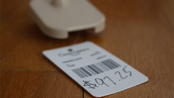 Any numbers named instantly appears on a price tag hanging from ANY PART OF YOUR CLOTHING.