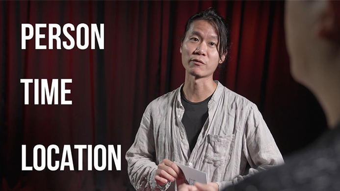 A random volunteer is asked to call out three random pieces of information: a person, a time and a location.