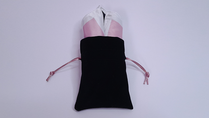 Don't have a breast pocket? We supply you with a pocket-shaped bag in which the folded hank is placed. This can be carried in your handbag, man bag, bum bag or wherever you wish to carry it.