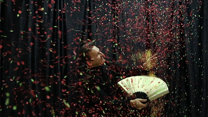 No extra confetti load from your hands, everything is self-contained; just make the fan appear and everything flows until the climax.