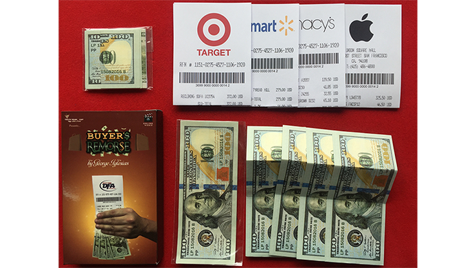 Buyer's Remorse is a new trick that'll help you fix that situation in a blink of an eye! Now you can transform any paper receipt into a bunch of bills and it works with any currency!