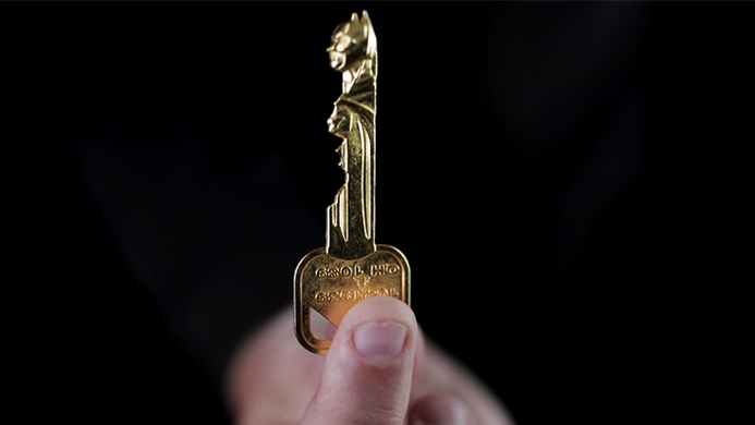 Once the selection is made the spectator can now open their closed hand to reveal the key. It has visibly changed from a regular key to a 3D sculpt of the superhero they selected.