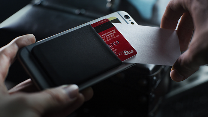 The magician removes their phone, asking the spectator if they too have a cell phone. (Who doesn't have one these days?) A business card is removed from the credit card holder attached to your phone.