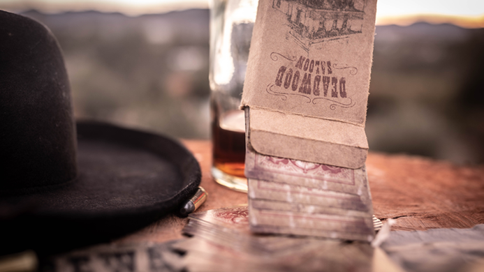 The incredible "Dead Mans Deck" which has been painstakingly designed and aged to replicate an authentic Deadwood Saloon deck. The type of deck that may have been used by Wild Bill Hickok in the Deadwood saloon on the night he was shot holding what would from that moment be referred to as "The Dead Mans Hand".