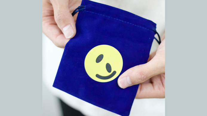 Facial parts shaped Inside a round case. Each time shaken the case, the parts move, randomly changing the face. Hand the case to the audience and have them shake it as much as they like without looking at the face. After confirming the completed face, turn over the drawstring pouch on the table-and lo and behold, that exact face is clearly printed on the pouch! You can then hand all the props directly to the audience for checking.