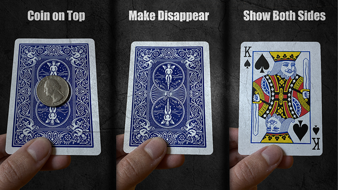 We're sure you've never seen anything like it: the perfect gimmick to add to your repertoire! A coin is placed on a playing card and disappears as if by magic before the eyes of the public... To reappear at the place of your choice!