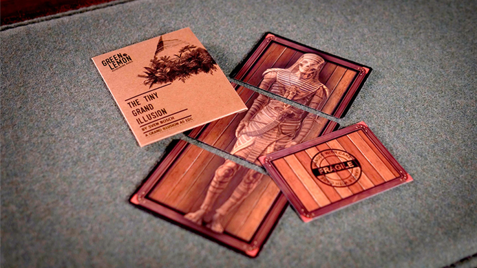 "The Tiny Grand Illusion" is available in two variants: the Magic Assistant and The Mummy. In the Mummy variant, you play with a boxed-up mummy that gets tangled up during its journey to the museum.