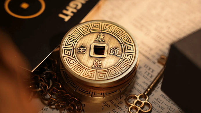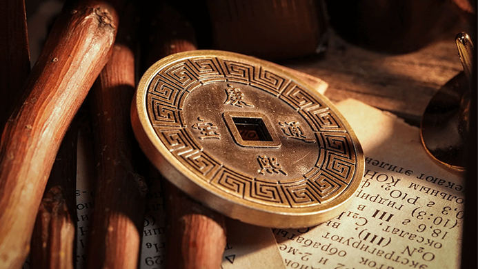 Using an ancient Chinese coin as a guide, you slide it across the pages of a book and have the spectator stop it at any point. The coin circles a specific word, and with a subtle display of mind-reading, you reveal the exact word they had in mind.