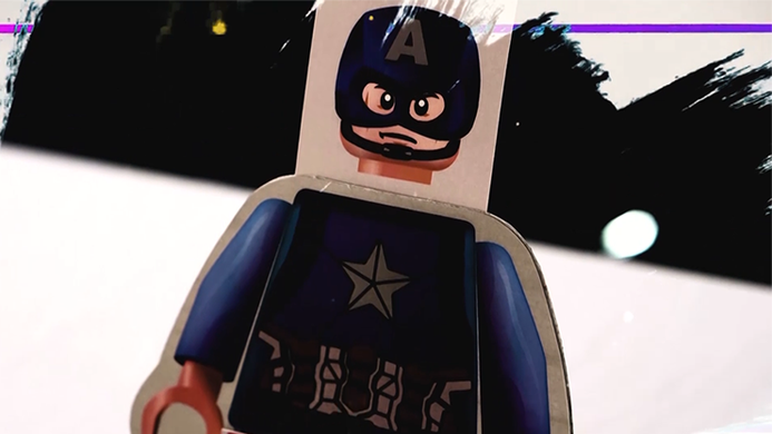 A Lego figure is shown, with its torso and legs but without the head. The spectator picks between different character images of their heads. The magician says he knew which head they will pick, showing the back matches the character. As a great finale, with a little hit in the card, the figure explodes and the full character image appears.