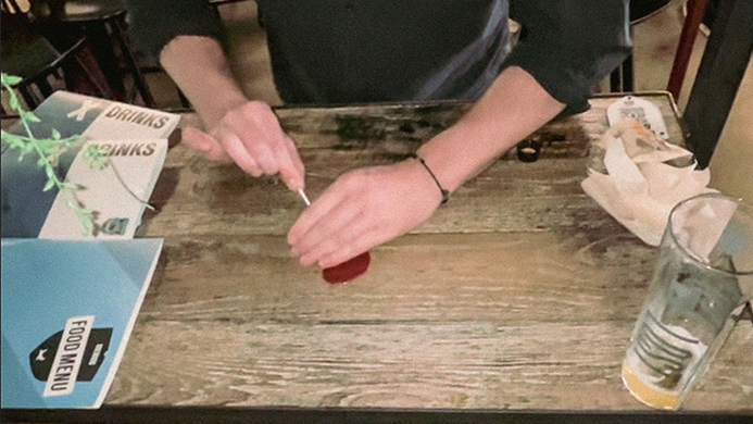 Squirt some ketchup or hot sauce on the table, then dip a stick into it & it becomes a lollipop.