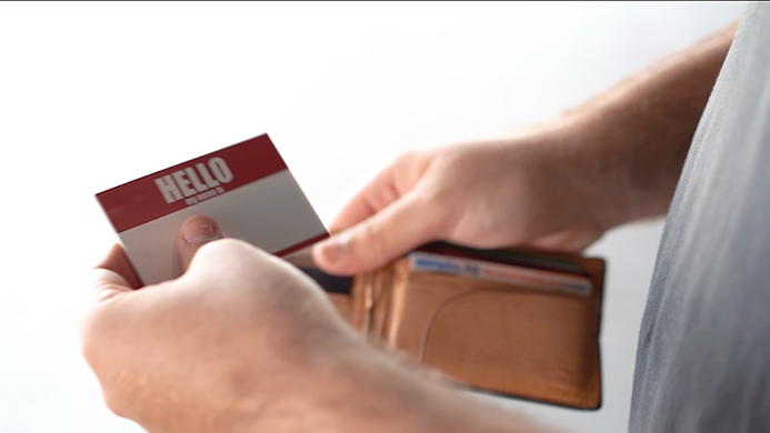 Imagine this...You give a "My name is" sticker to the spectator to be signed (by him) with his name, after this, you introduce a second sticker to be signed with your name. Now, right after you start performing your favorite magic trick, both stickers change in a visual way, so now the magician has the spectator name stuck on his chest...and the spectator has the magician's name!