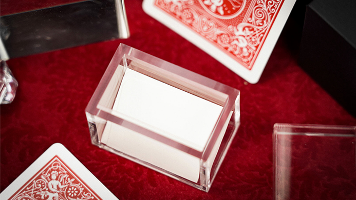 Here is one of the effects you can do: You begin by placing a transparent box containing a folded playing card on the table in full view of the audience. An audience member selects a card, signs it, and loses it in the deck. After a series of effects, the card disappears from the deck. You then pick up the box, remove the lid, and tip the folded card to your fingertip. You unfold the only card in sight, and it is exactly the signed card. You can show your hands and the box clearly empty, leaving your audience completely baffled.
