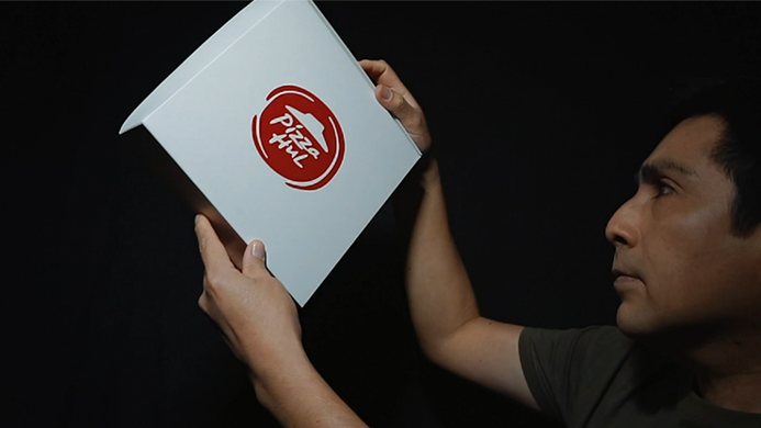 Show the box completely empty, close it and automatically your audience will be very surprised to see a real pizza appear.