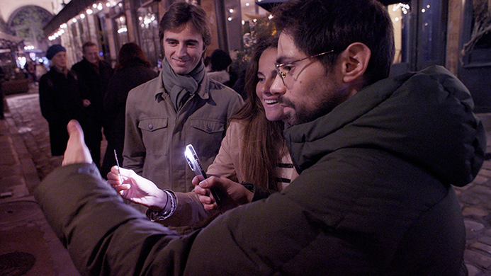 Once your spectator has chosen a card, you explain how the answer to discovering their card lies in the cosmos. With a smartphone in hand, you shine a light through a specially-crafted card with a bunch of holes punched in it, casting a random display of stars onto the wall. This haphazard array of stars then visually realigns into a unique revelation of their selected card.