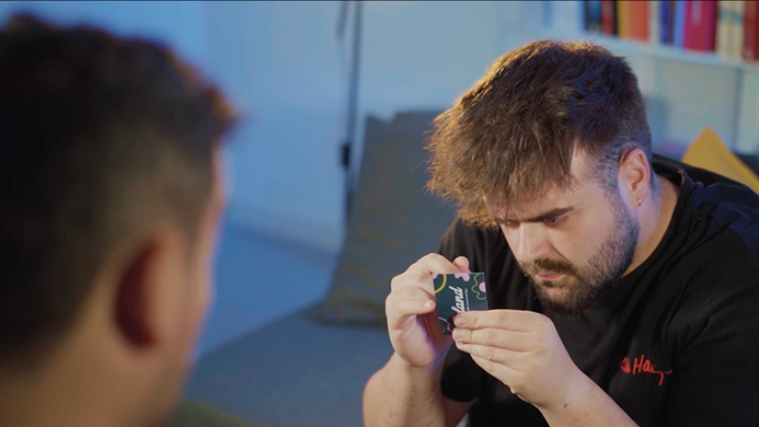 The magician introduces a business card from a Toy Shop that he loved when visiting New York. He explains that the Toy Shop had plenty of awesome toys. He says that he is going to perform a magic trick with that business card and one of the toys that he liked the most.