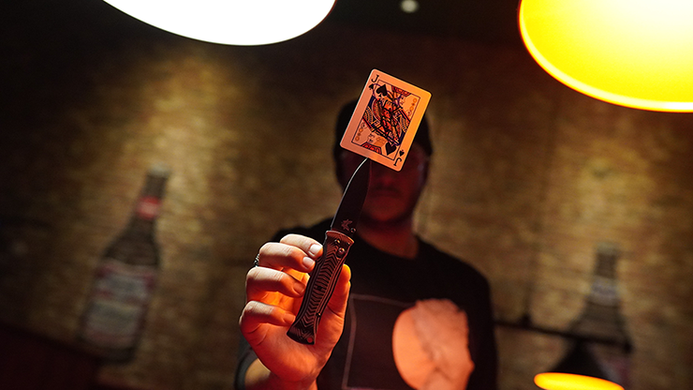 Your spectator selects and signs a card which then gets returned to the deck and the deck is shuffled, at which point you pull out your pocket knife and stab it through the edge of the deck, stabbing into the very edge between the fibers of a single card to reveal that you've managed to impossibly stab into their signed card!