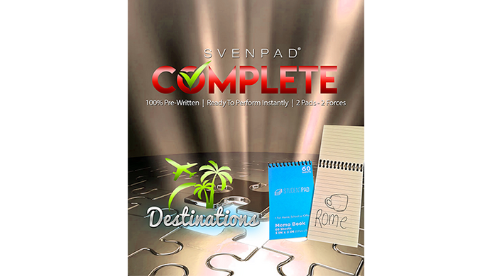 Includes TWO of our world-famous SvenPads®, with TWO different powerful forcing movie possibilities (Rome and Hawaii). The covers of these pads are secretly coded on the front, so the performer instantly knows which force is inside. Both pads look identical and have the same non-force movies inside. The movies chosen are ideal for powerful and fun revelations of scenes from the movies that everyone knows!