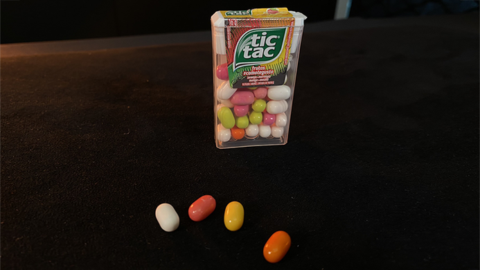 You present the spectator with a box of very popular colored candies (TIC TACxc2xae), and pour some of them into his hand. In a moment, you are going to offer him a unique experience.